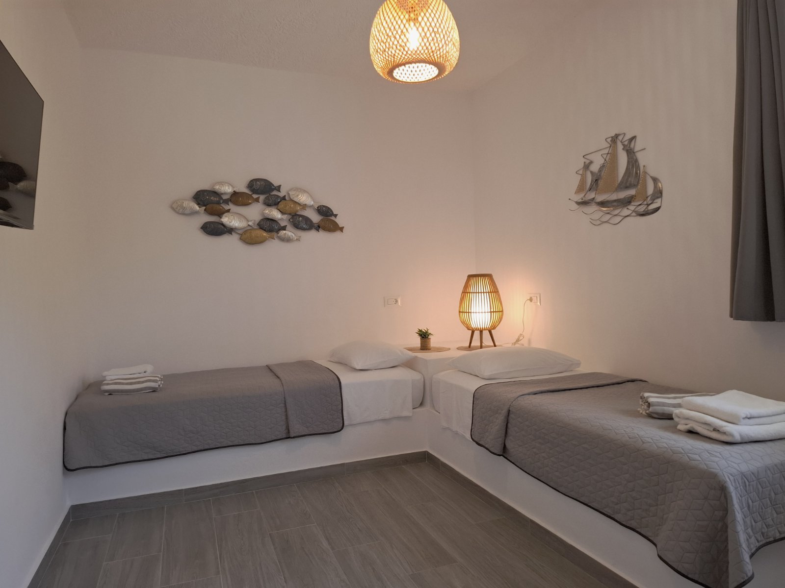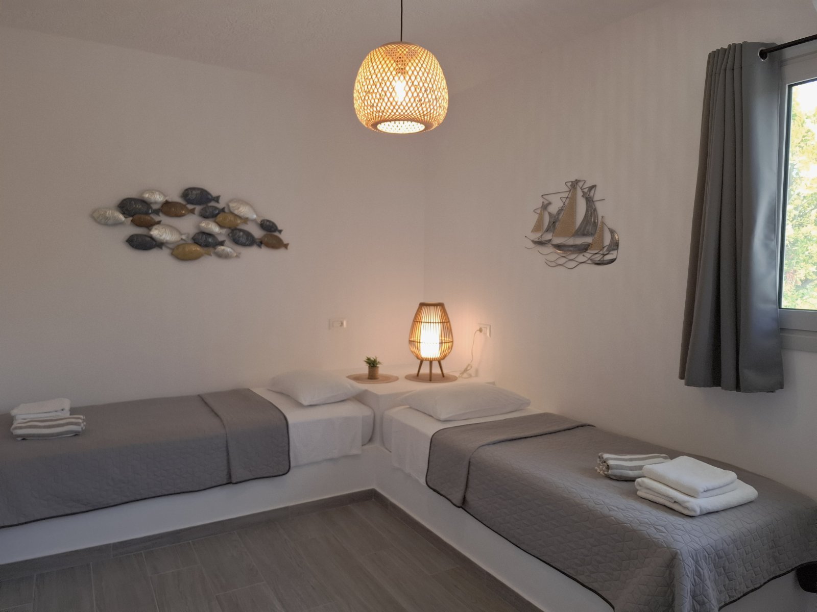- Ένα υπνοδωμάτιο με διπλό κρεβάτι και δύο εντοιχισμένα μονά κρεβάτια