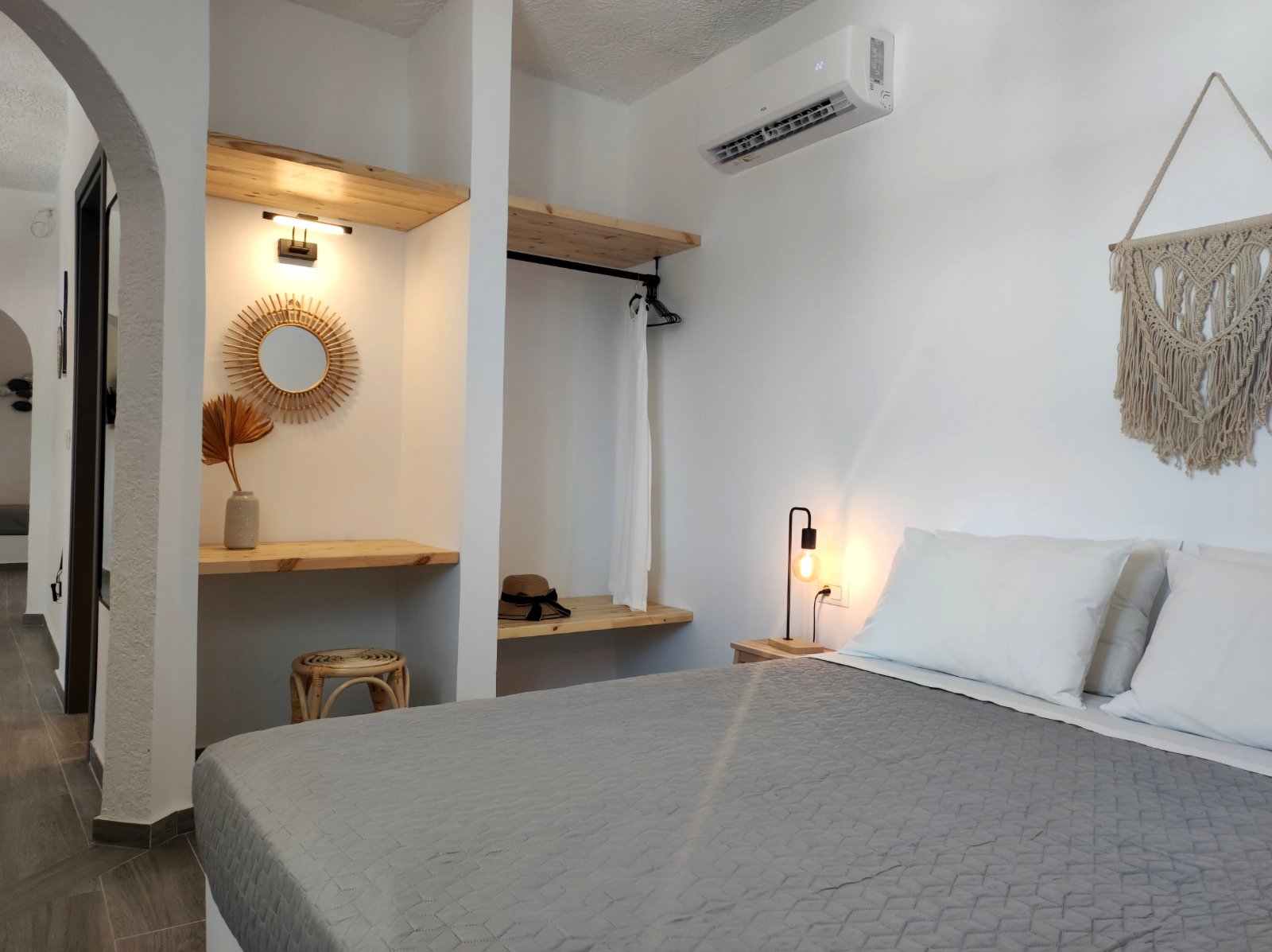 - Υπνοδωμάτιο 1 : υπέρδιπλο κρεβάτι -- μπουντουάρ -- ανοιχτή ντουλάπα -- στεγνωτήρας μαλλιών