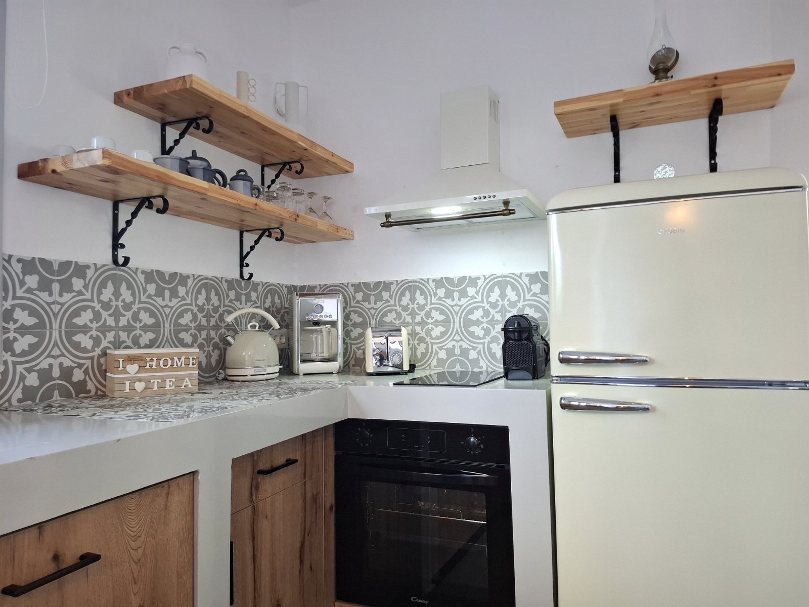 - Κουζίνα : Ψυγειοκαταψύκτης -- πλυντήριο ρούχων -- βραστήρας -- μηχανή Nespresso και φίλτρου καφέ -- κεραμικές εστίες -- ηλεκτρικός φούρνος -- τοστιέρα