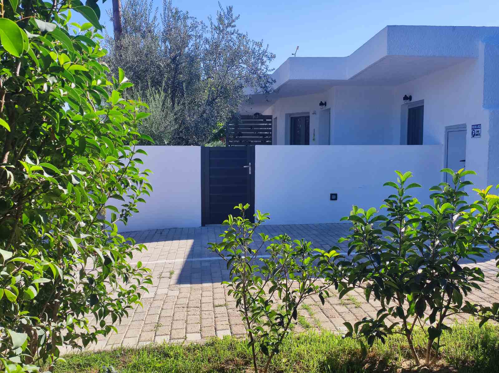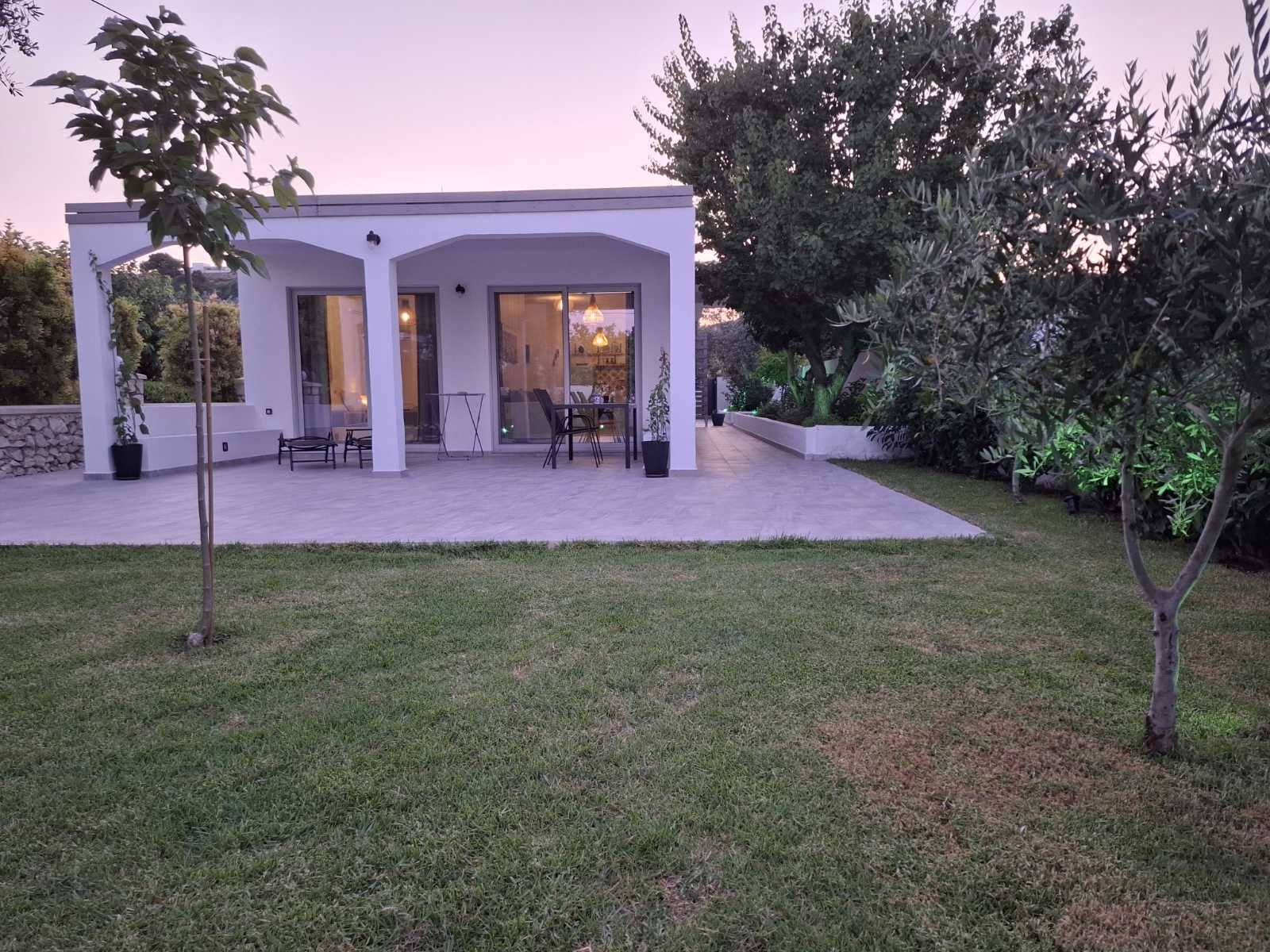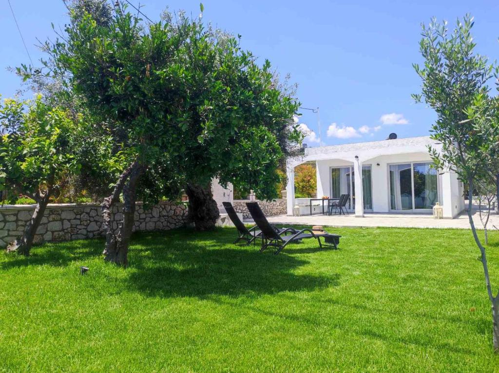 - A large courtyard with comfortable sofas, dining table, chairs and sunbeds.