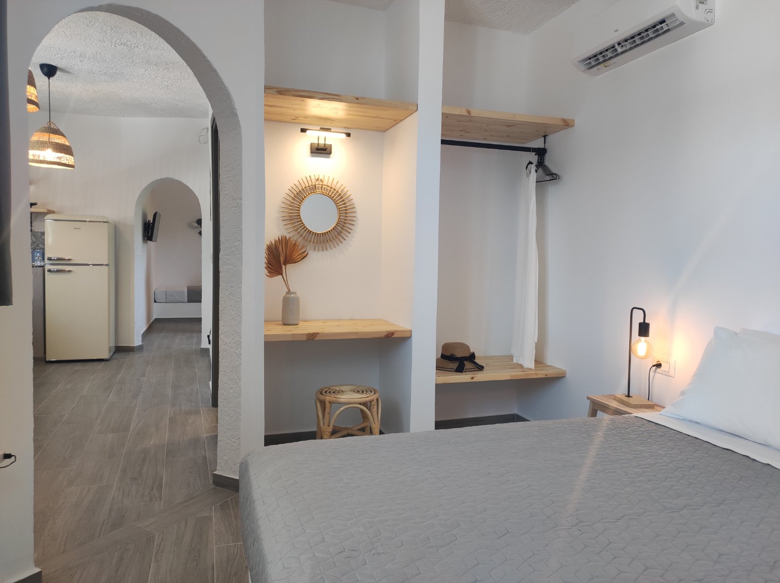 Phos Suite is bright with elegant light fabrics which will make you want to stay in and enjoy its fantastic atmosphere. It is well-designed offering you a comfortable and luxurious stay. Its size, elegance, artistic quality and comforts have contributed to its name. Travel back in time and leave everything that concerns you behind and experience the authentic Rhodesian hospitality in the Fos suite.